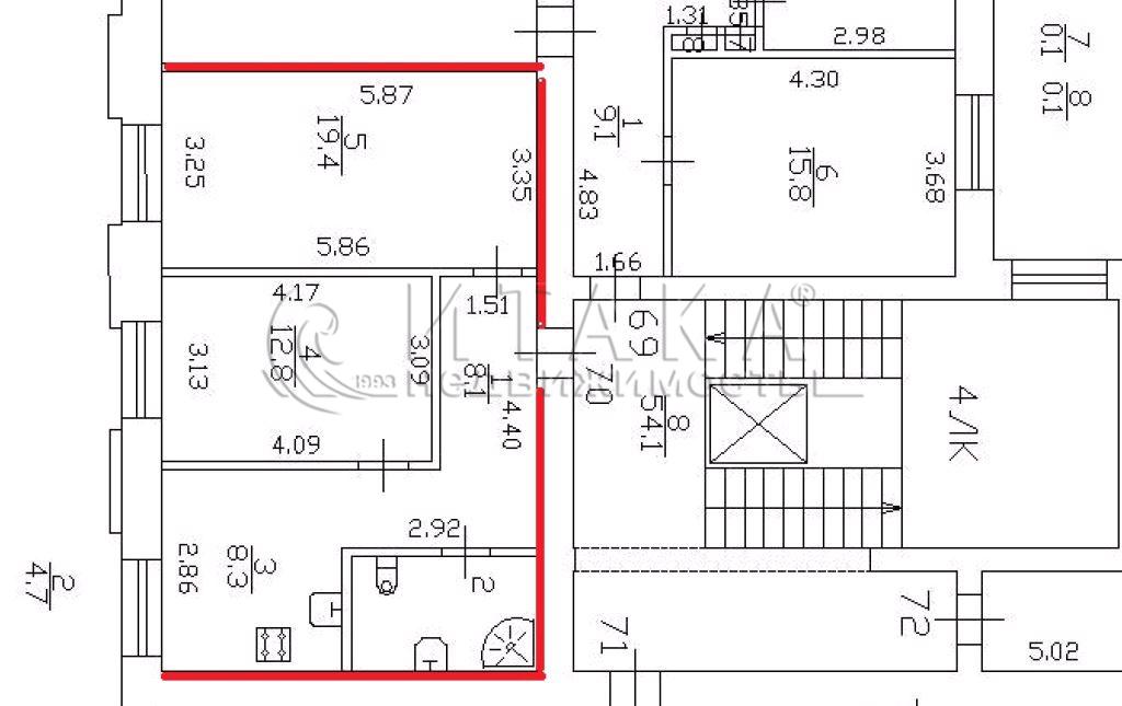 Площадь комнат: 19.4+++12.8 м2