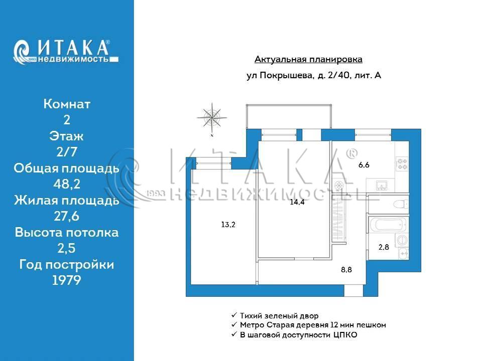 Общая площадь: 48.2 м2