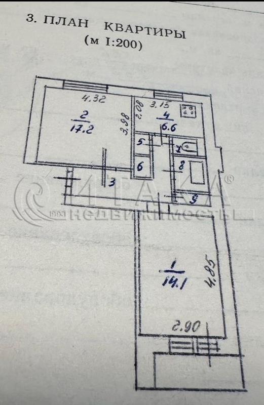 Площадь комнат: 17.2+14.1 м2