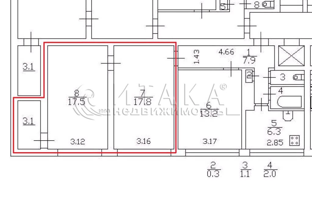 Площадь комнат: 17,5+17,8 м2