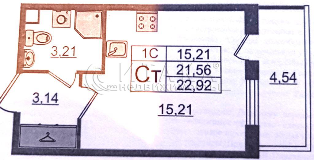 Общая площадь: 22.92 м2