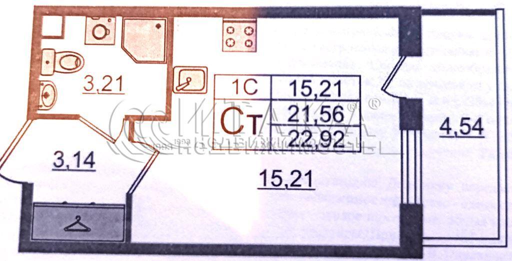 Общая площадь: 22.92 м2