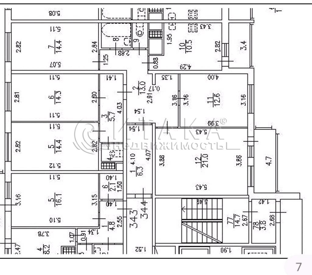 Площадь комнат: 14,4++14,3+14,4+21,0+12,6 м2
